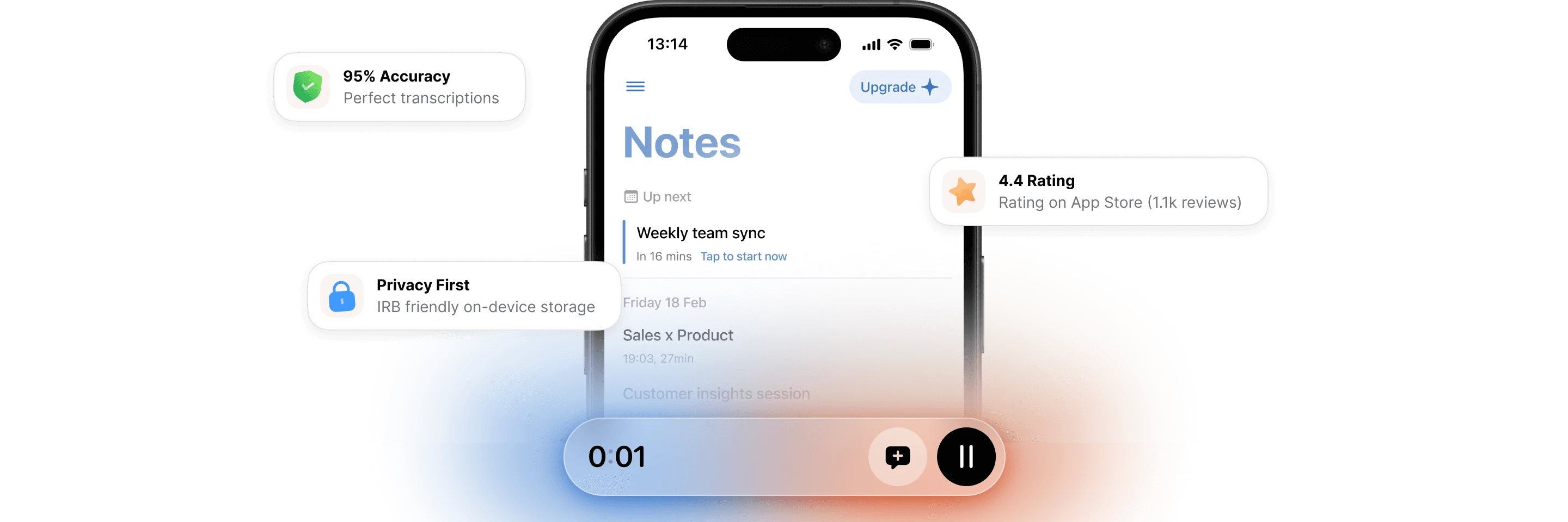 Launch the app and start recording with one tap. Works for in-person, Zoom, or phone conversations.